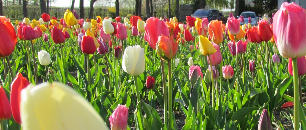 Im Frühjahr startet die Blumensaison mit Narzissen und Tulpen, ab Juni können dann Gladiolen und Sonnenblumen und im weiteren Verlauf auch Dahlien selber geschnitten werden.